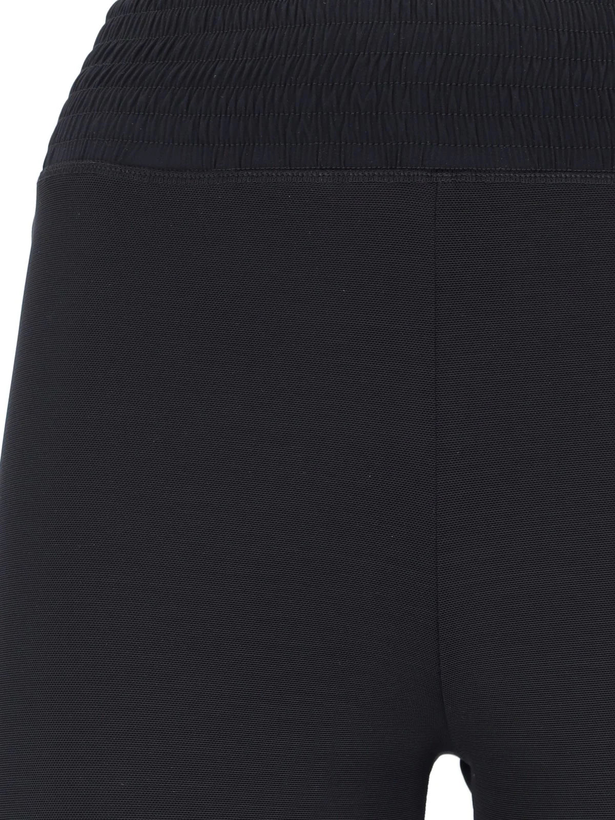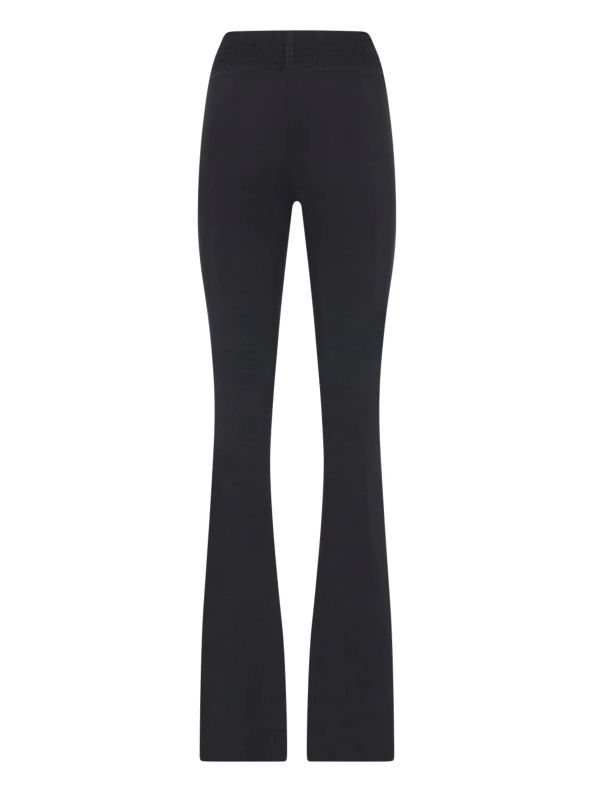 Stylish black bootcut trousers with comfortable elastic waistband and elegant flared leg design.