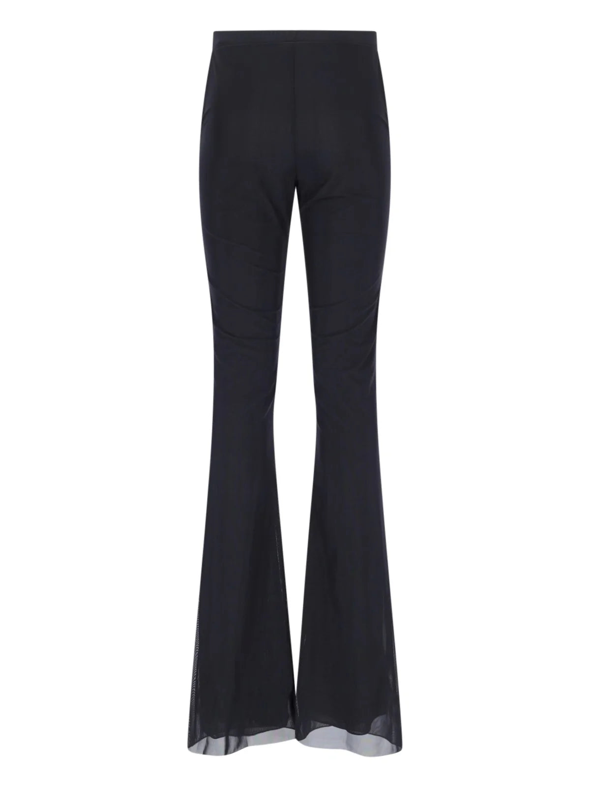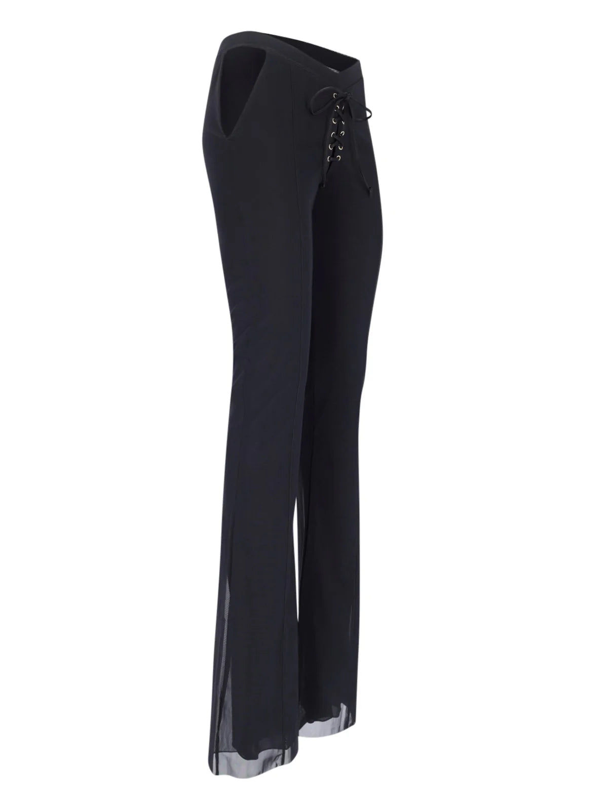 Stylish black bootcut trousers with front lace detail and flared bottom.
