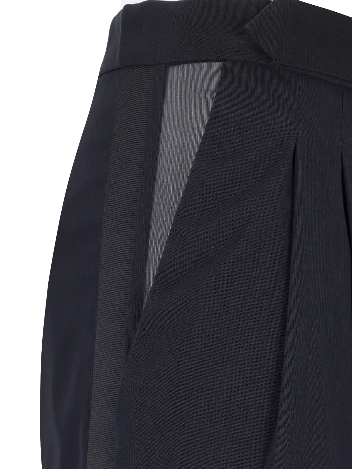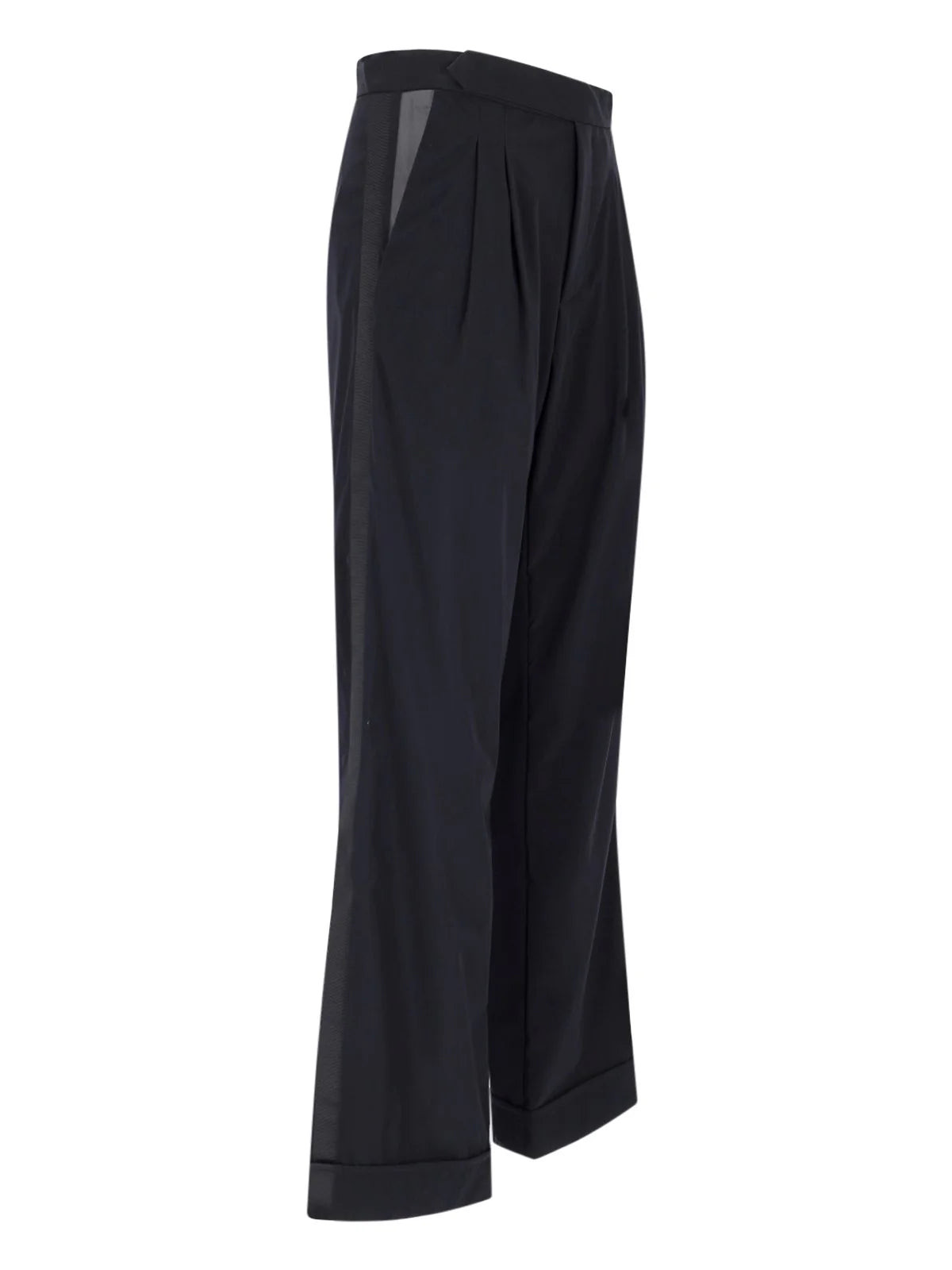 Sophisticated black straight trousers with expert tailoring and central darts for a flattering silhouette.
